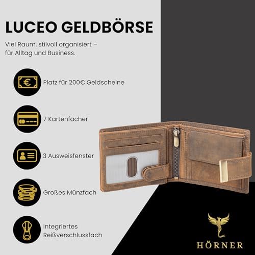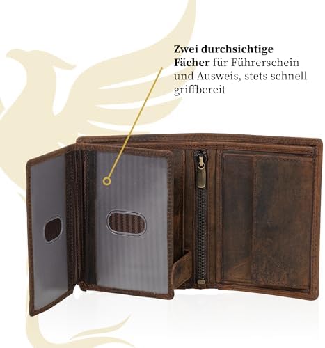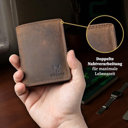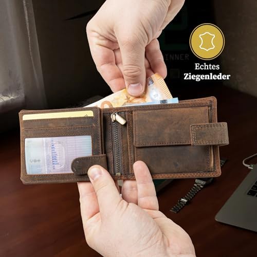 Die Fortuna Geldbörse ist aus hochwertigem, braunem Echtleder gefertigt. Dieses Material verleiht der Geldbörse nicht nur eine edle Optik, sondern sorgt auch für eine hohe Strapazierfähigkeit, die den täglichen Anforderungen standhält. Die natürliche Beschaffenheit des Leders sorgt zudem für eine ansprechende Haptik und ein luxuriöses Gefühl.