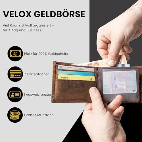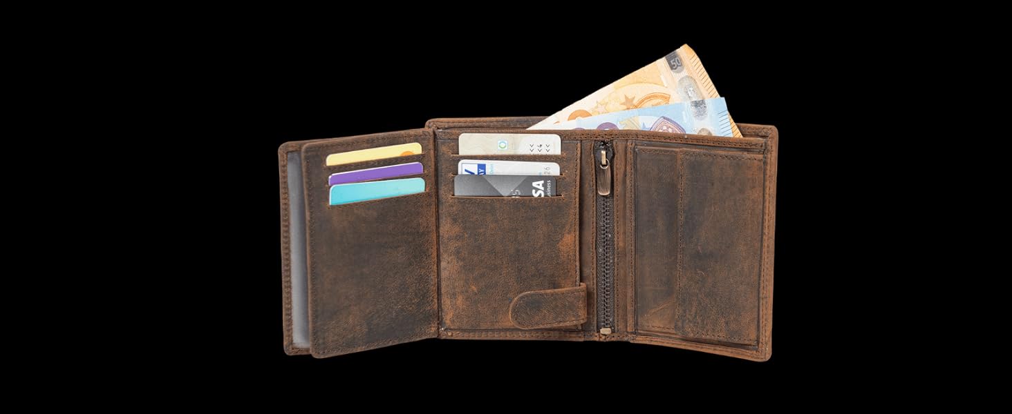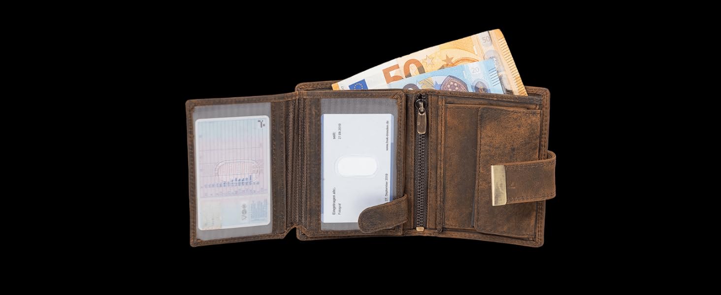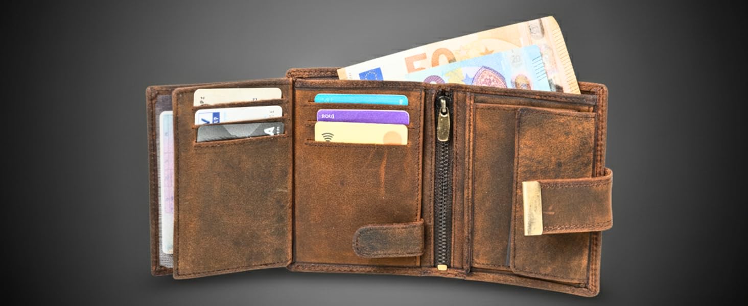 Die Fortuna Geldbörse überzeugt durch eine durchdachte und optimierte Fächeraufteilung. Sie ermöglicht eine organisierte Unterbringung aller wichtigen Dinge, sodass Sie immer schnell und einfach auf Ihre Karten oder Bargeld zugreifen können. Ob beim Einkaufen oder auf Reisen, die praktische Anordnung erleichtert Ihnen den Alltag.