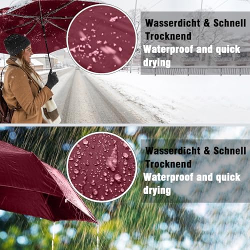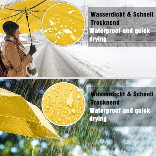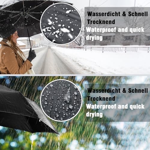 Die Bespannung aus der Wasserabweisungsstufe 210T, kombiniert mit einer zertifizierten Teflon-Beschichtung von DuPont, macht diesen Regenschirm besonders effizient. Er weist Wasser ab, trocknet schnell und ist schimmelresistent. So bleibt Ihr Schirm nicht nur funktional, sondern auch hygienisch und einsatzbereit.