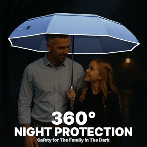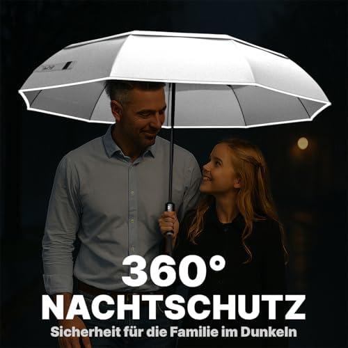 Für mehr Sicherheit in der Dunkelheit sorgt das einzigartige Reflexband, das sich über den gesamten Durchmesser des Regenschirms zieht. Dieses innovative Design erhöht die Sichtbarkeit bei schlechten Lichtverhältnissen und macht Sie für Autofahrer besser sichtbar – ein wesentlicher Vorteil an regnerischen Tagen oder in der Dämmerung.