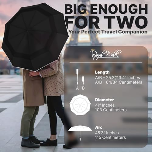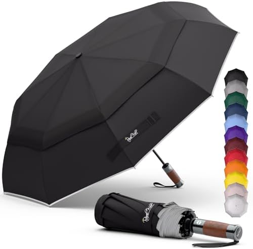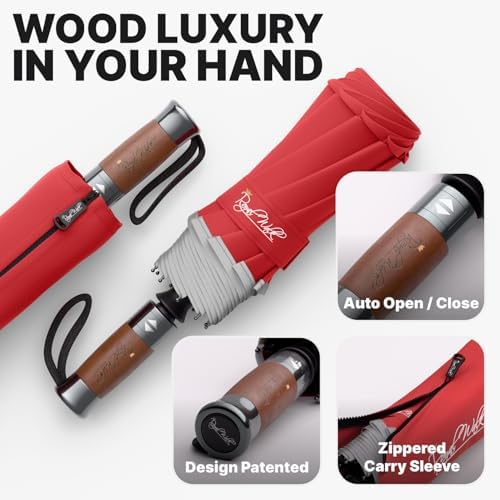 Royal Walk Taschenschirm – Sturmfest, Automatik und winddicht mit echtem Holzgriff für Damen und Herren, perfekt für all