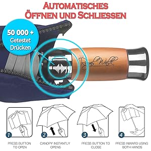 Praktische Ein-Hand-Bedienung: Automatische Öffnungs- und Schließfunktion ermöglicht einfaches Handling mit nur einer Hand.