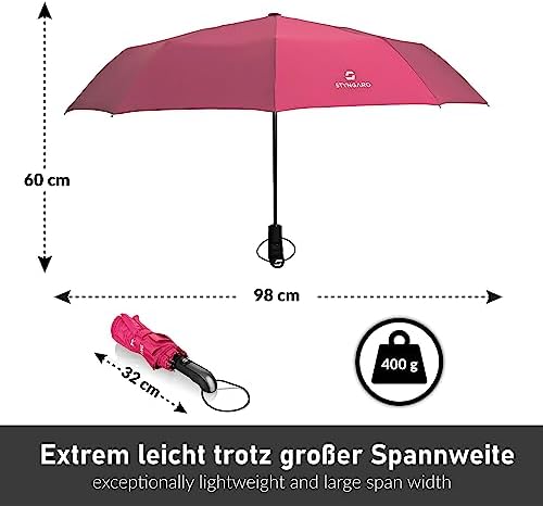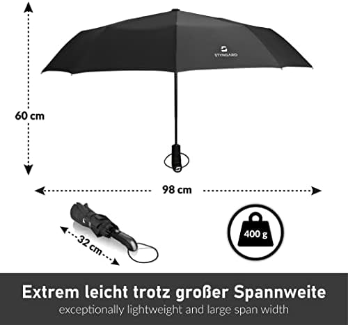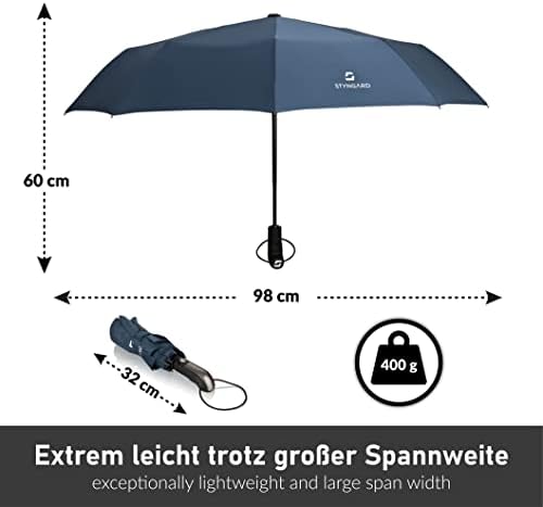 Lassen Sie sich nicht von unhandlichen Schirmen ärgern! Mit einer durchdachten Konstruktion lässt sich der STYNGARD Taschenschirm auf ein kompaktes Format bringen, das leicht in jede Tasche passt. Ideal für unterwegs, ohne dabei auf Stabilität und Qualität verzichten zu müssen.