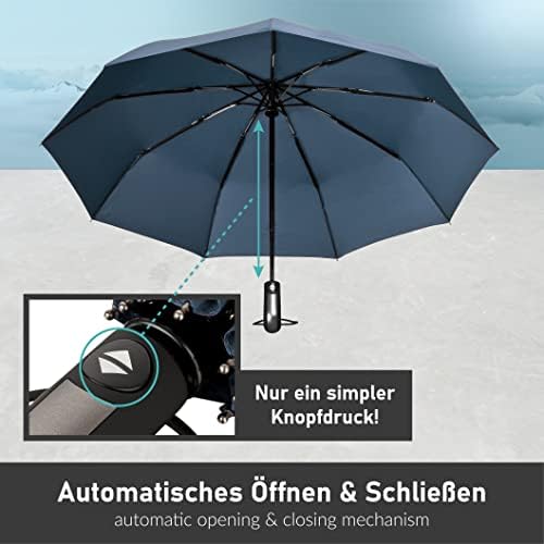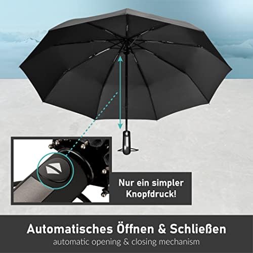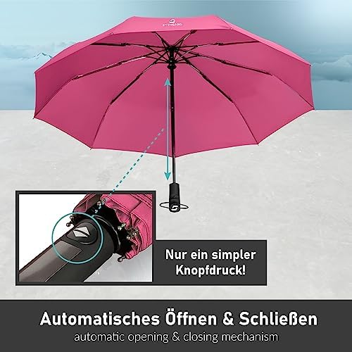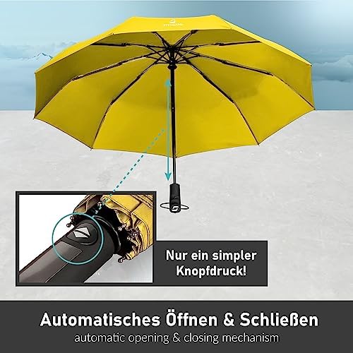 Erleben Sie den perfekten Begleiter für unvorhersehbares Wetter. Mit der praktischen Ein-Knopf-Automatik öffnet und schließt sich der STYNGARD Taschenschirm in Sekundenschnelle. Egal, ob beim Verlassen eines Gebäudes, beim Einsteigen in den Bus oder ins Taxi – mühelos und zuverlässig genießen Sie den Komfort der schnellen Handhabung.