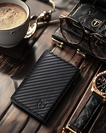 TEEHON Herren Geldbörse Slim Wallet aus Kohlefaserleder mit RFID-Schutz – Minimalistisches Portmonee für Alltag & Reisen