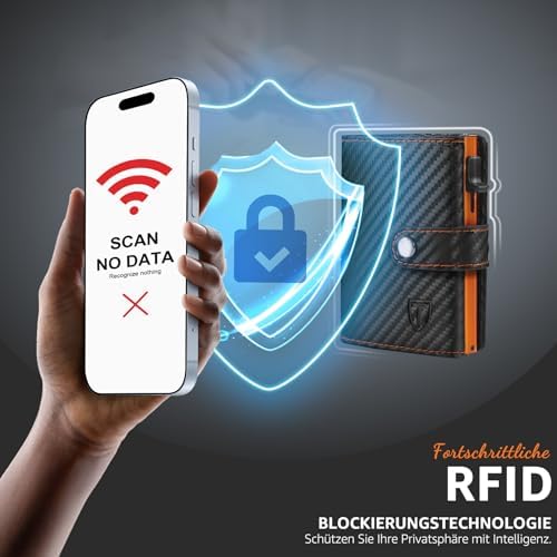 Ein bedeutendes Merkmal unseres Aluminium Portemonnaies ist der integrierte RFID-Schutz. Dieser schützt Ihre Bankkarten, Kreditkarten und Ihren Personalausweis effizient vor unbefugtem Scannen, sodass Sie jederzeit beruhigt sein können, dass Ihre sensiblen Daten sicher aufbewahrt sind.