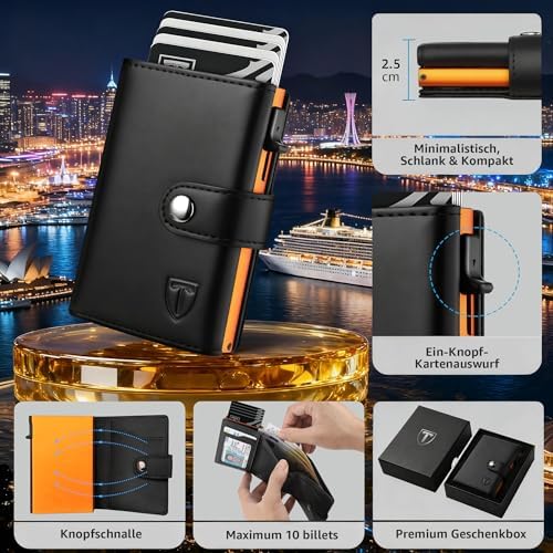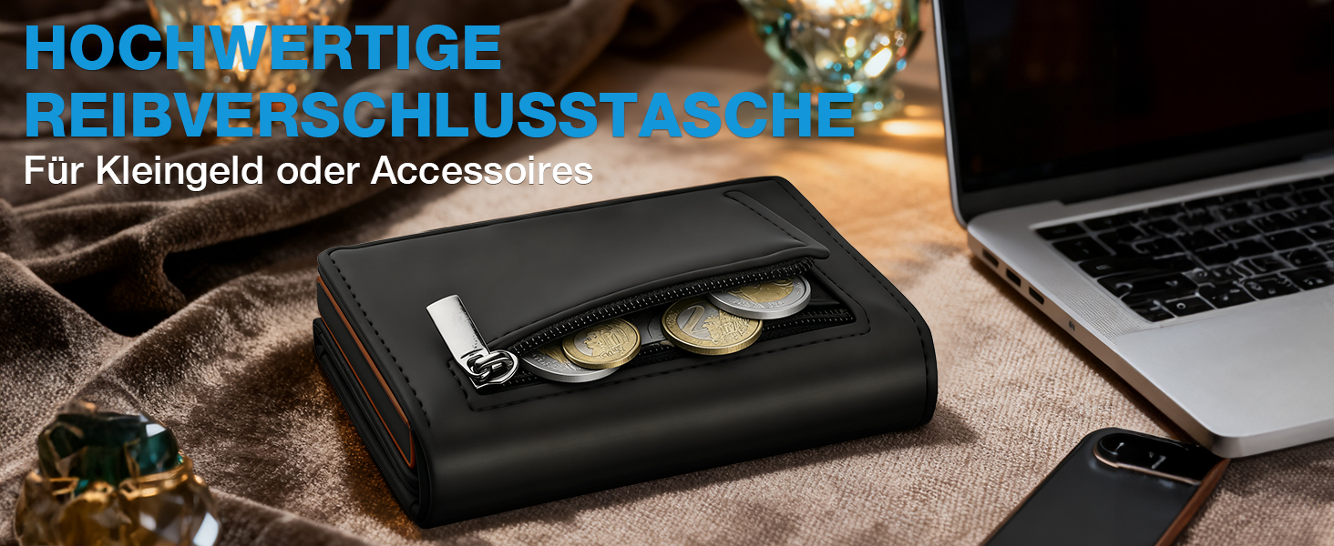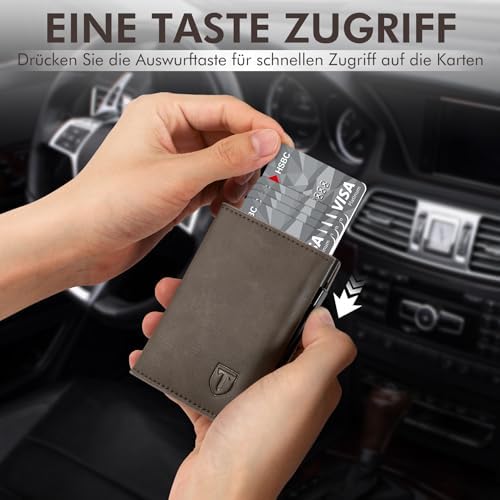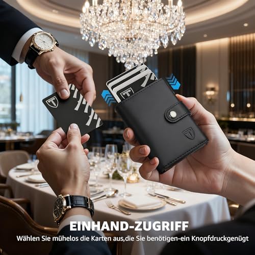 Das raffinierte Pop-up-Design ermöglicht es Ihnen, auf Knopfdruck bis zu 6 Karten elegant aus dem rutschfesten Kartenetui zu entfalten. Dies sorgt für ein schnelles und stilvolles Bezahlen, ganz nach den Anforderungen eines anspruchsvollen Alltags. Diese Geldbörse vereint intelligente Technologie mit diskreter Eleganz und bereichert Ihren lifestyle.