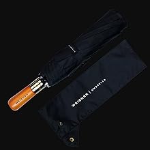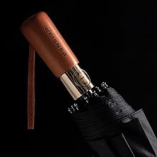 Mit einem Griff aus echtem Buchenholz und einem stilvollen Finish in gold-kupferner Farbgebung hebt sich dieser Schirm deutlich von gewöhnlichen Modellen ab. Er kommt mit einer eleganten Leder-Schlaufe und einem passenden Etui, ideal für alle, die Wert auf Design und Qualität legen.