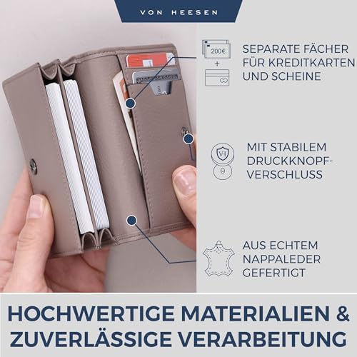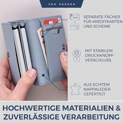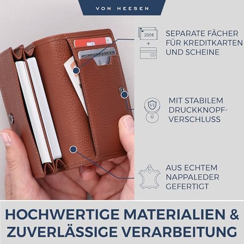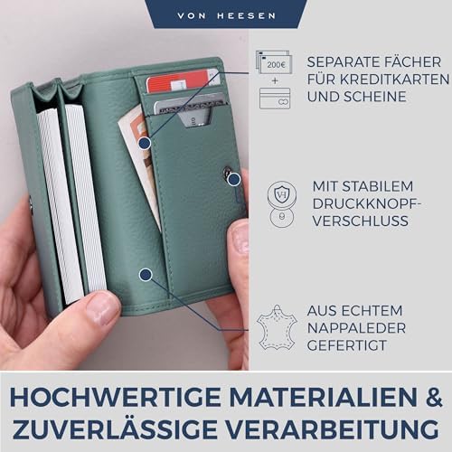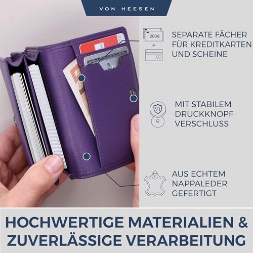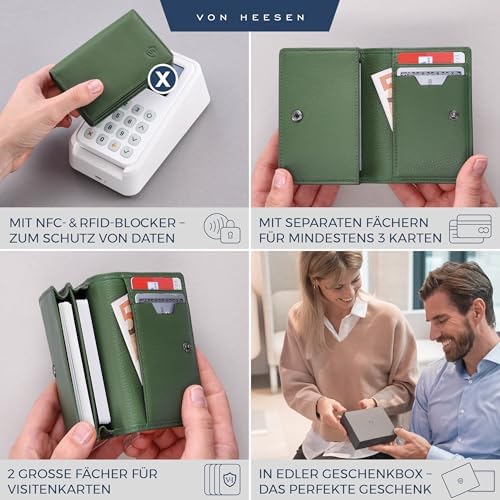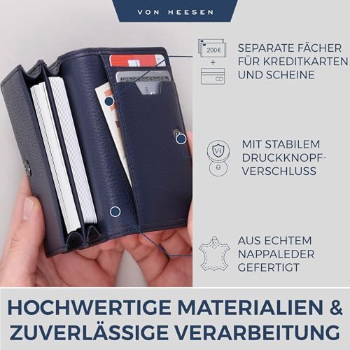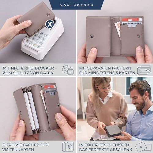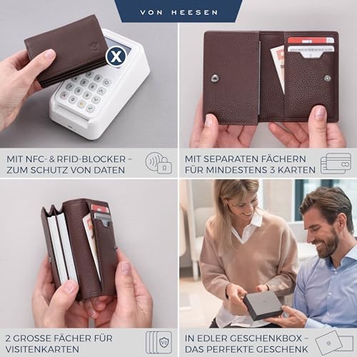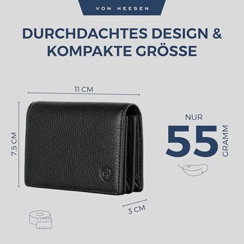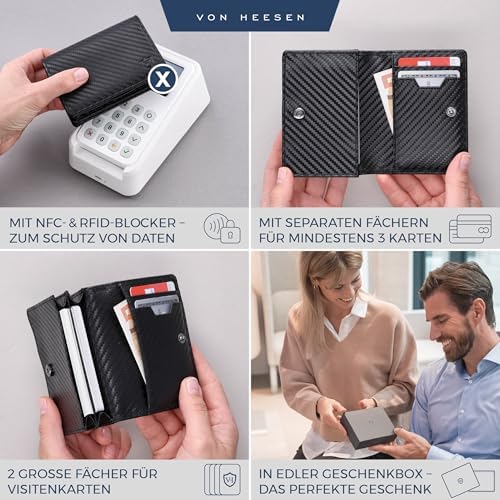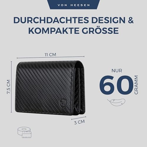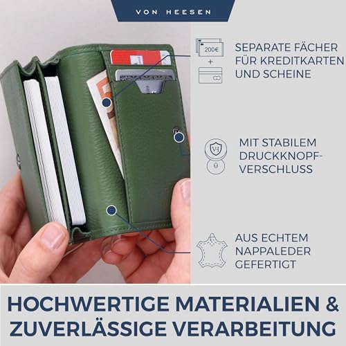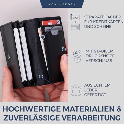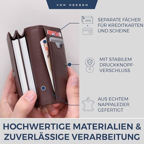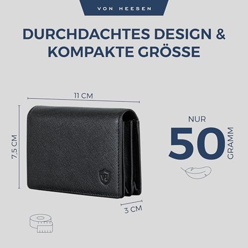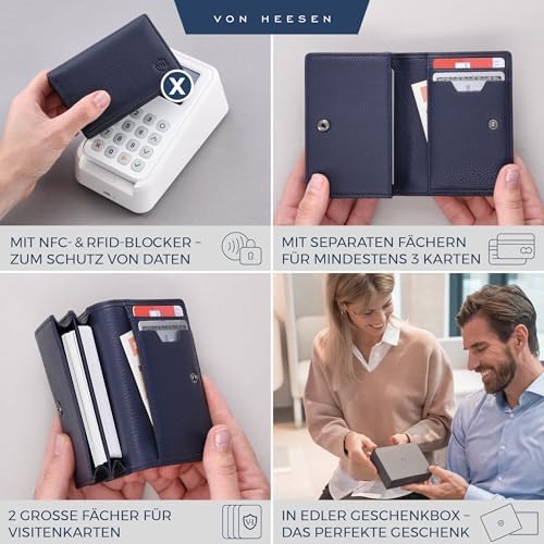 Die durchdachte Innenaufteilung des Visitenkartenhalters bietet Platz für alles Wesentliche. Mit zwei großen Hauptfächern zur getrennten Aufbewahrung von eigenen und fremden Visitenkarten sowie vier zusätzlichen Karten- und Einschubfächern für Ihre EC- und Kreditkarten, sind Sie bestens ausgestattet. Die Maße von 11×7,5×3 cm machen es kompakt und dennoch geräumig genug, um alle wichtigen Karten sicher zu verstauen.