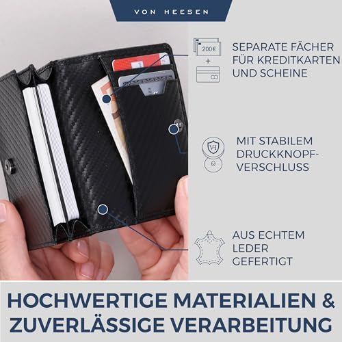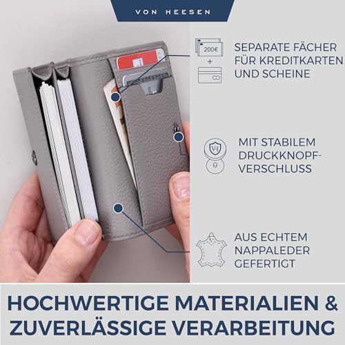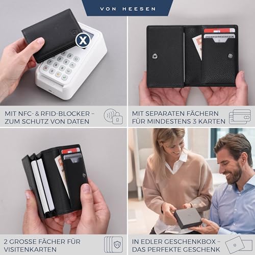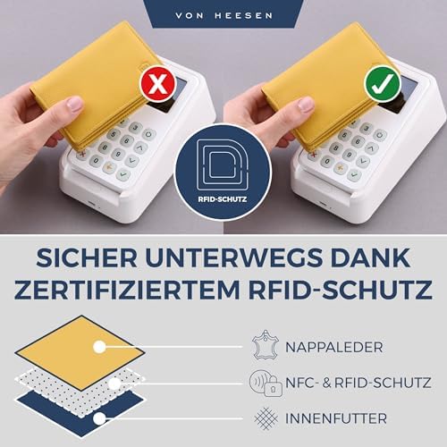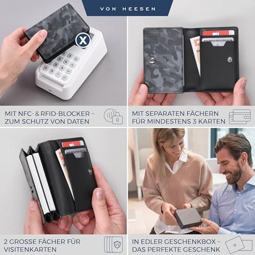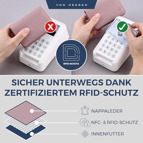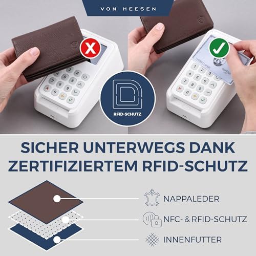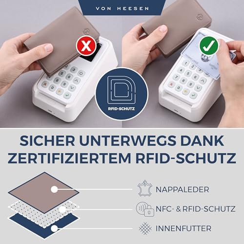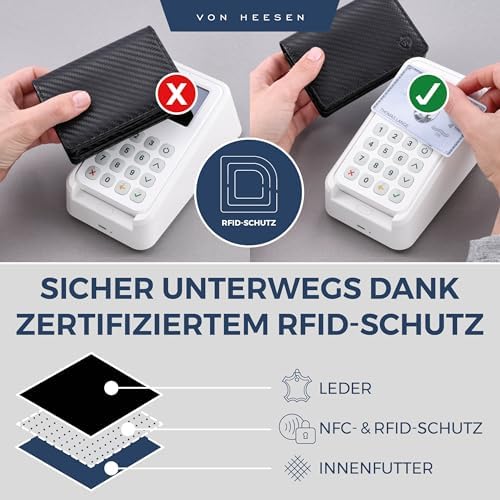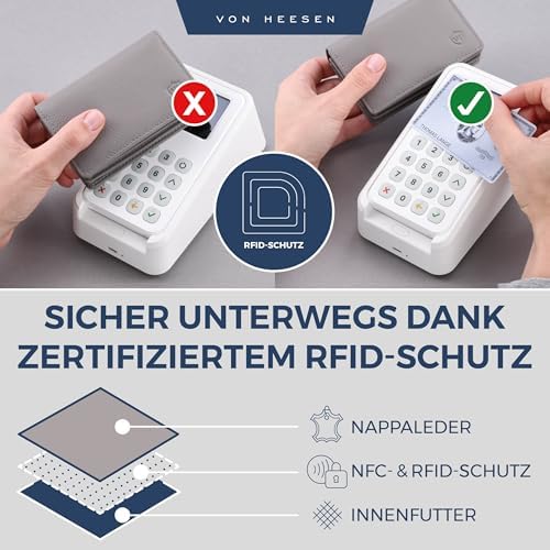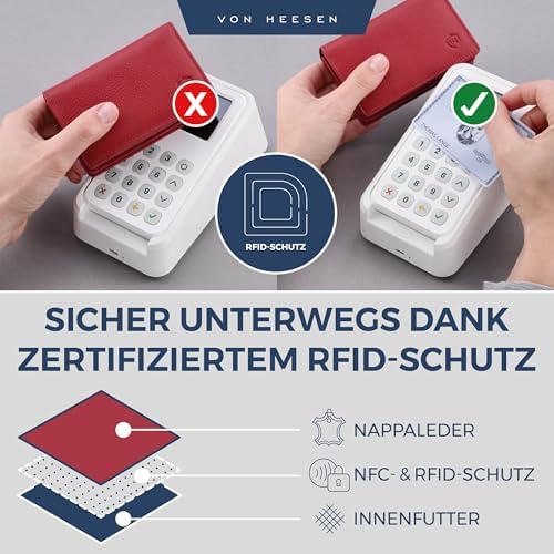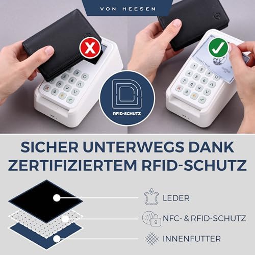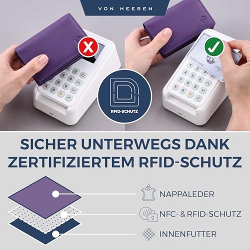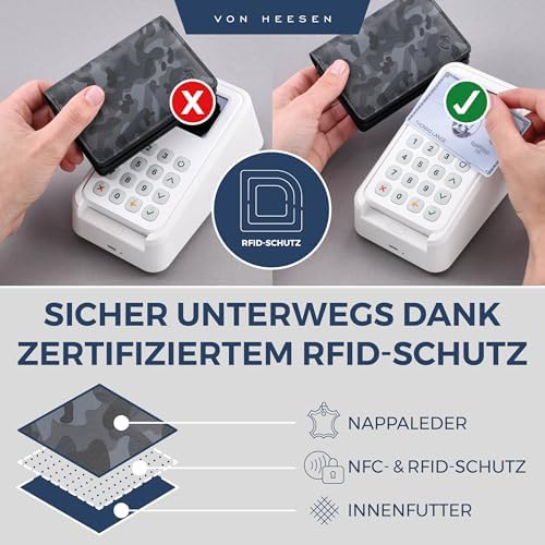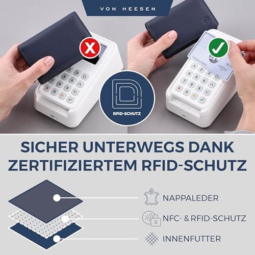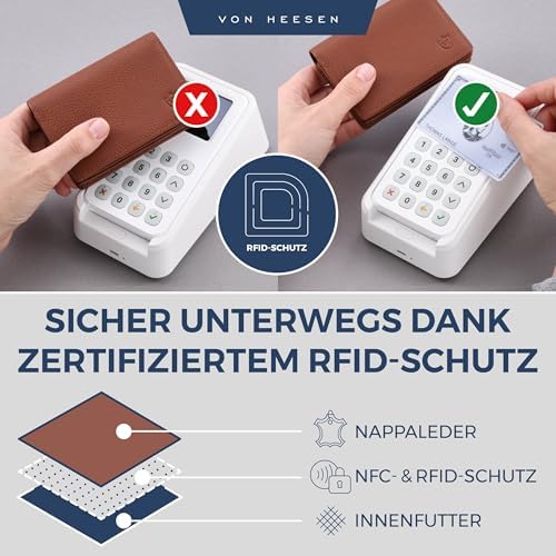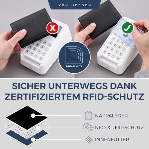 Sicherheit hat oberste Priorität. Der integrierte, vom TÜV zertifizierte RFID-Schutz schützt Ihre persönlichen Daten zuverlässig. So sind Ihre im Etui aufbewahrten Karten vor unbefugtem Zugriff und Datendiebstahl sicher, was Ihnen ein beruhigendes Gefühl im Umgang mit sensiblen Informationen gibt.
